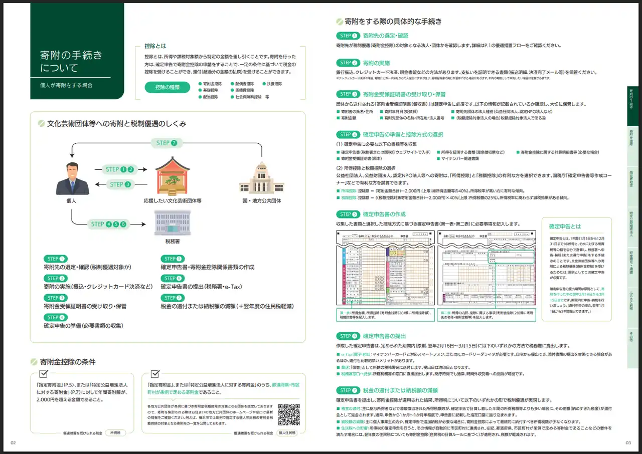 主な内容:個人・法人の寄附税制の仕組み、手続きの流れ、Q&A、活用事例など |