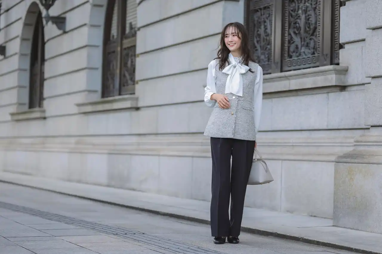 軽やかに着映えるなら 春ツイードの端正なジレで |