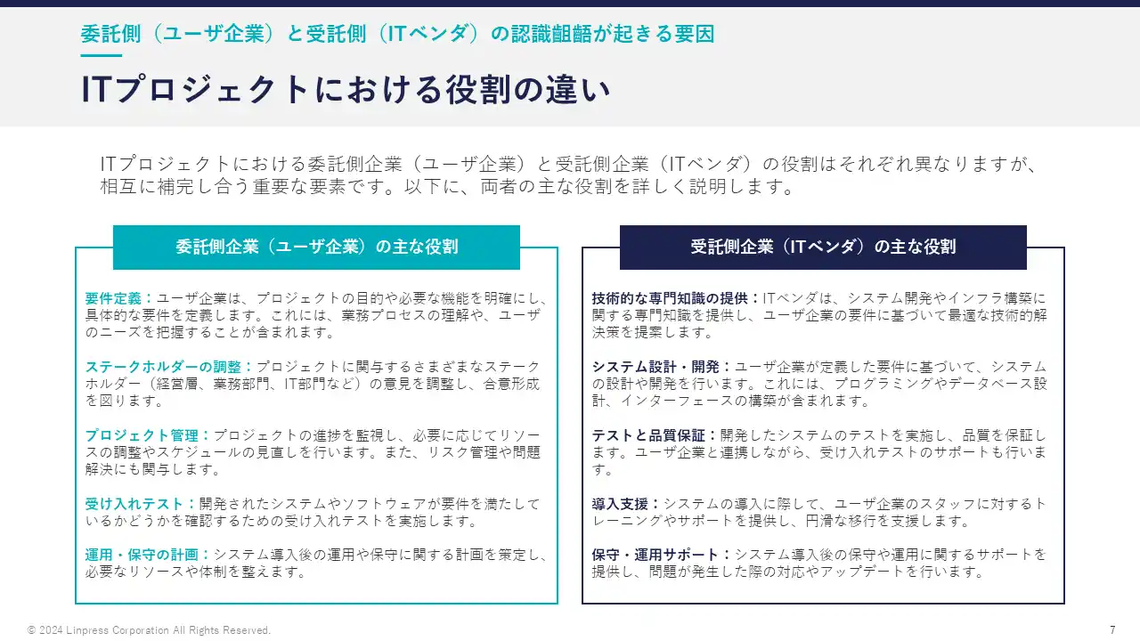 委託側(ユーザ企業)と受託側(ITベンダ)の認識齟齬が起きる要因 |