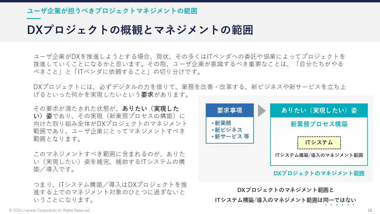 ユーザ企業が担うべきプロジェクトマネジメントの範囲 |