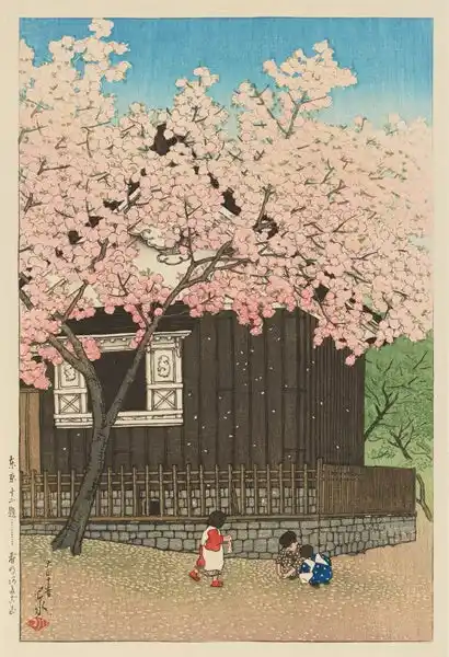 15.川瀬巴水 「東京十二題」より 《春のあたご山》1921 年 |