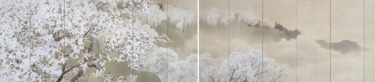 菊池芳文《小雨ふる吉野》1914 年 11.左隻 12.右隻 13.全図 |