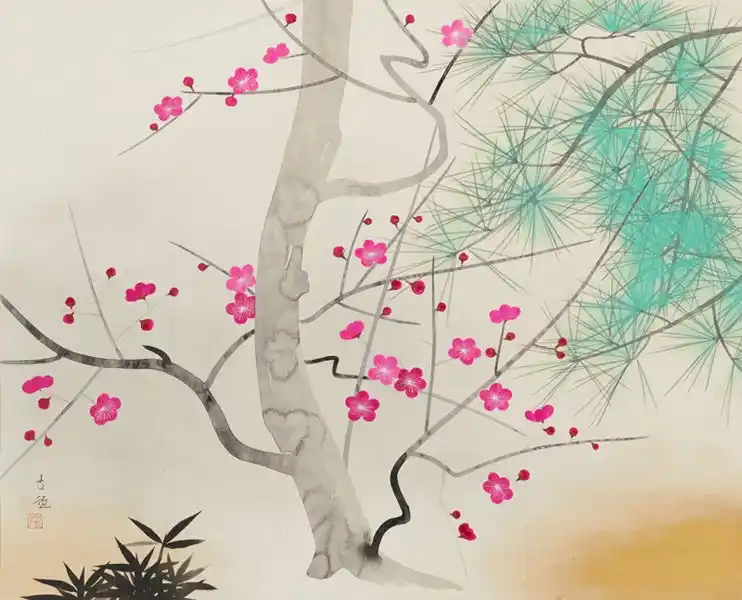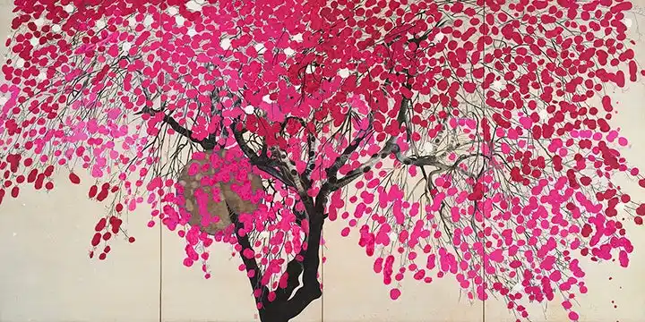 桜の絵を得意とした跡見玉枝《桜花図巻》をはじめ、雨にけぶる吉野の桜が抒情的な菊池芳文《小雨ふる吉野》、鮮やかなピンクの花弁が目をひく船田玉樹《花の夕》など、春にちなんださまざまな作品が一室に勢ぞろいするほか、水面に散る長瀞の桜を描いた重要文化財、川合玉堂《行く春》を、年に一度、春の時期にだけ公開します。 |