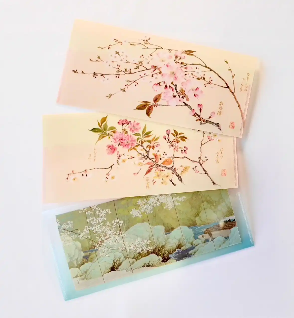 桜や春を感じる作品をモチーフとしたチケットファイルやブックカバー、扇子、風呂敷などのオリジナルグッズを販売します。 |