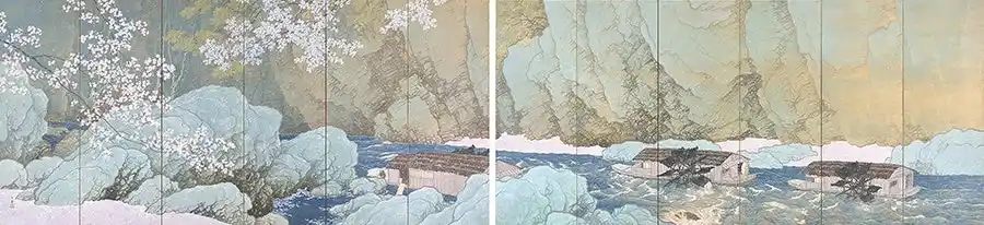 川合玉堂《行く春》1916 年 重要文化財 04.左隻 05.右隻 06.全図 |