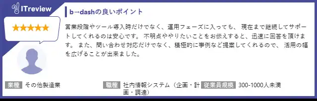 | https://www.itreview.jp/products/b-dash/reviews | |||