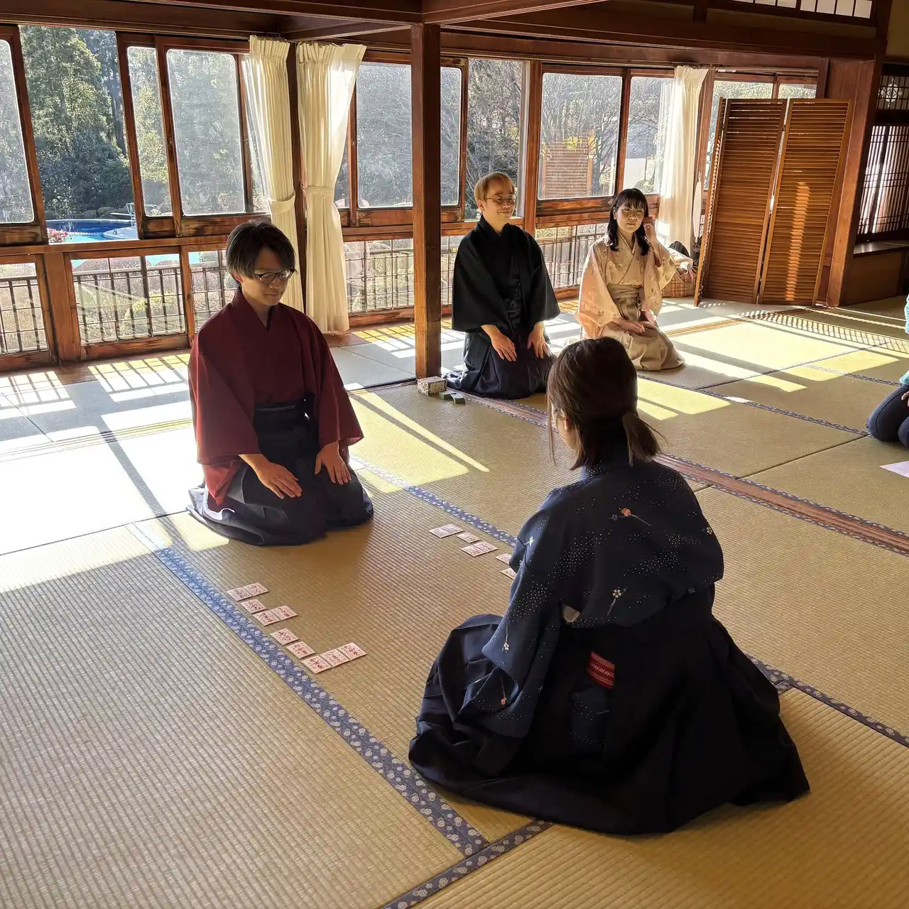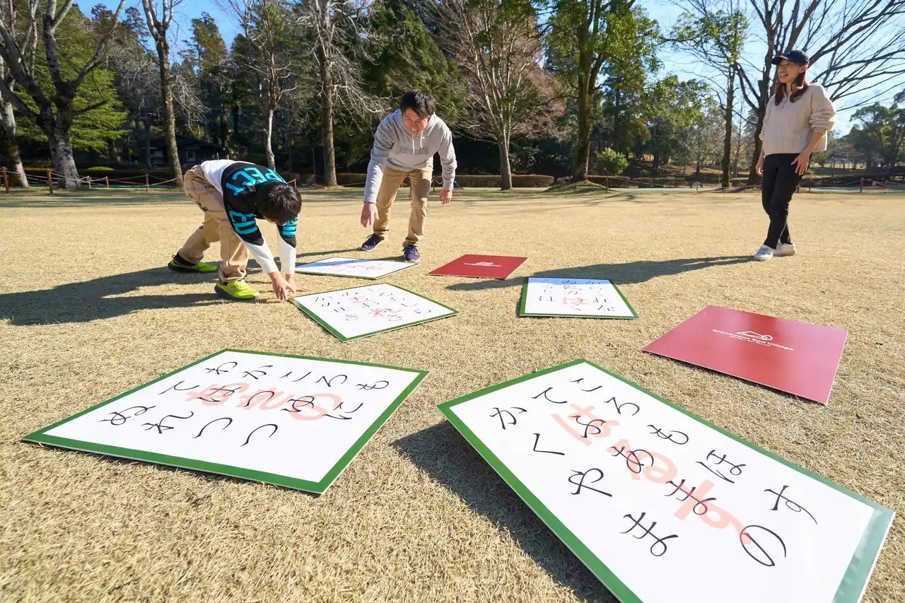 大きなかるた札を使って楽しむ「ジャンボかるた大会」を開催いたします。梅園の芝生に置かれたジャンボサイズのかるた札の中から読み上げられた札を探して、走って、取って、みんなで盛り上がる体験型かるたです。千葉県かるた協会の方をお招きし、読み手やルール説明を行っていただきます。小さなお子様も一緒にお楽しみいただけます。 |