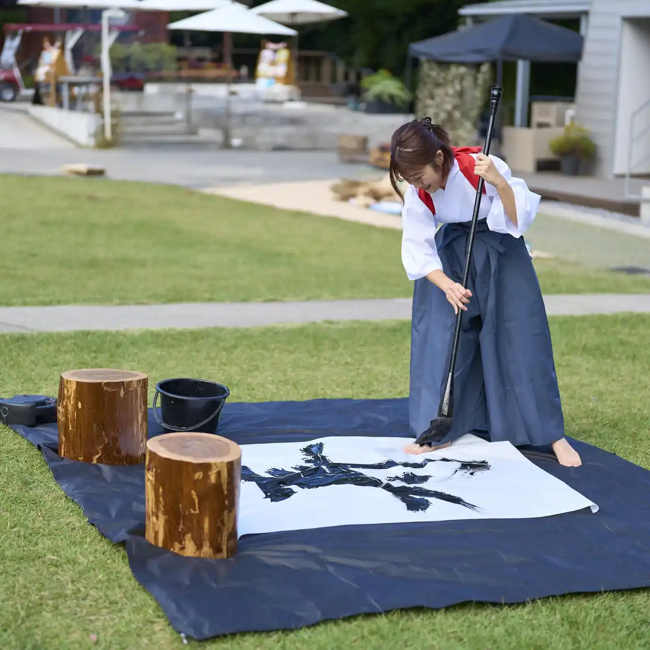 巨大な筆を使ったダイナミックな書道パフォーマンスを体験する「書道パフォーマンス体験」を開催いたします。書道パフォーマンスの全国大会に出場経験のあるスタッフと一緒に、大きな和紙に お好きな漢字一文字や言葉を書き上げてみてください。 |