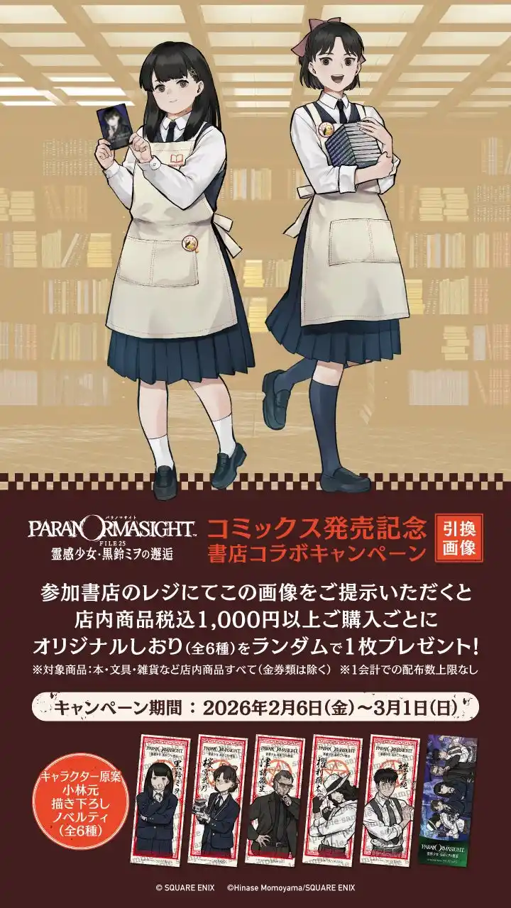 | 日本出版販売株式会社(代表取締役社長:富樫 建、略称:日販)は、株式会社スクウェア・エニックスが発売するゲーム「パラノマサイト FILE23 本所七不思議」の公式スピンオフコミカライズ作品『パラノマサイト FILE25 霊感少女・黒鈴ミヲの邂逅 上巻』発売を記念して、2026年2月6日(金)より全国261書店にて書店コラボキャンペーンを開催します。 | |||||||||||||