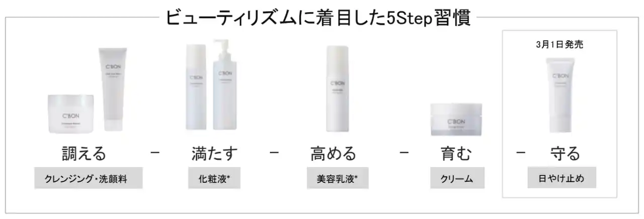 自らの肌をいたわるスキンケアタイムは、素肌のコンディションだけでなく心のリズムも調えてくれる大切な時間と考え、シーボンでは、ビューティリズムに着目した5Step習慣を提唱しています。新「フェイシャリストシリーズ」は、この5Stepに基づき、肌の基礎力にアプローチし、角層を多角的にケアして“もっちりと満ちた美肌”へ導くシリーズです。 |