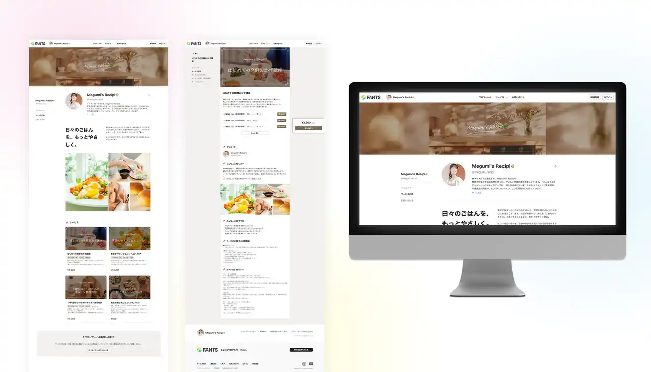 「FANTSサービス販売」は、独自のノウハウや専門性を持つクリエイターが、ホームページ作成、オンライン予約・決済、デジタルコンテンツ販売までをスマートフォンひとつで簡単に構築・運営できるサービスです。単発で終わりがちなサービス提供を、継続的な関係づくりへとつなげる入口として設計されています。 |