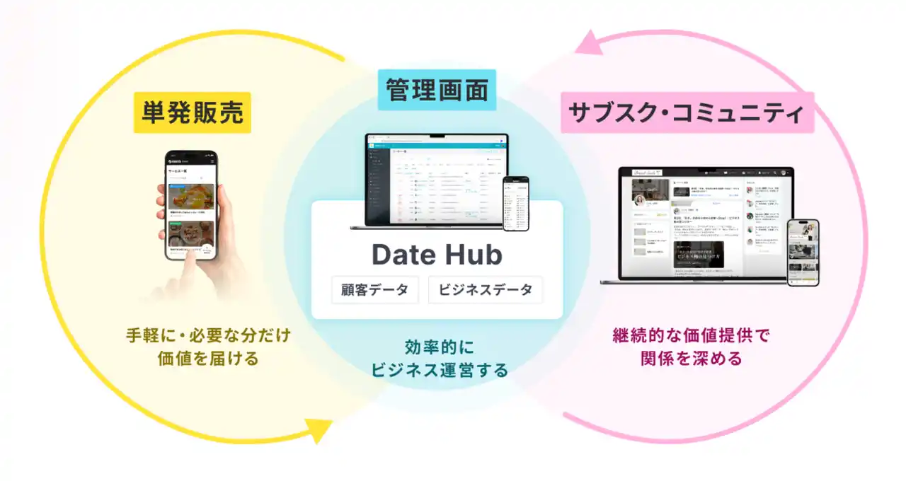 ノーコードで利用でき、販売・決済・顧客管理・コンテンツ提供といったオンラインビジネスに必要な機能を一つの基盤で提供しています。 |