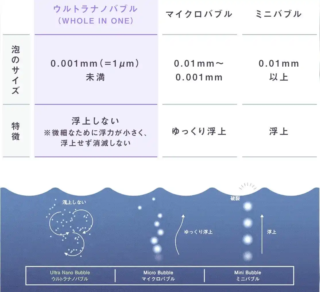 3.ウルトラナノバブルに変換して作物に与える。 (直径が約0.001mm未満の微細な気泡は通常の水では入り込めない隙間に入り込むができ、栄養素の浸透力を高める特性があります。本来の水のもつ栄養素を最大限に活かすことができます。) |