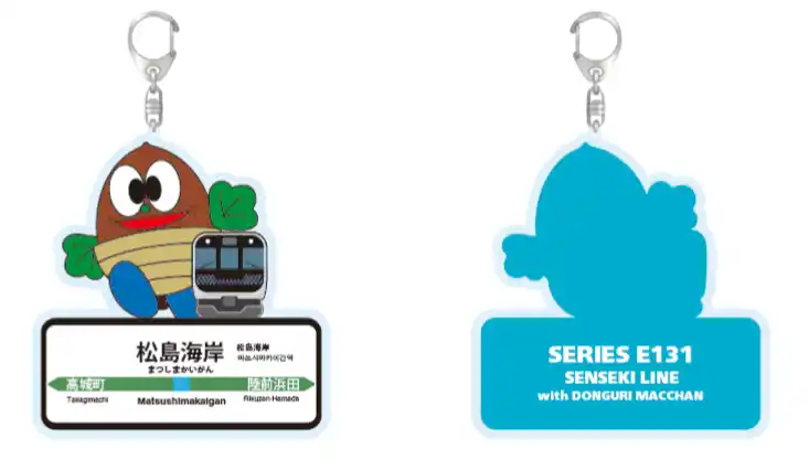 新商品は『E131系・E721系&どんぐり松ちゃん 松島マグネット』と『E131系withどんぐり松ちゃん 松島海岸駅名標キーホルダー』の2種類で、鉄道ファンにも注目の商品です。ぜひこの機会に、新商品をお買い求めください。 |