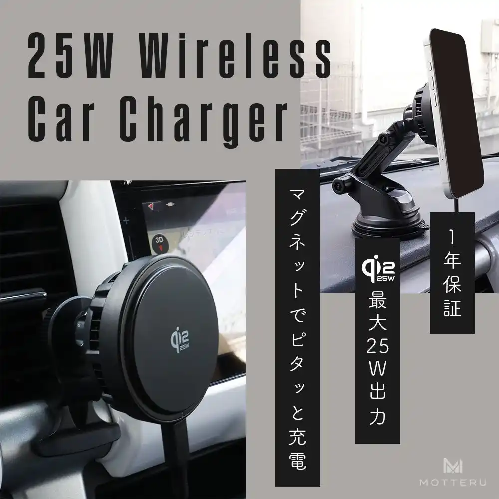 マグネット式ワイヤレス車載充電器 LEDなし Qi2.2 25W (MOT-QI25WCH02) |