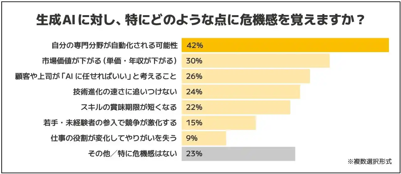 もっとも恐れているのは「専門分野の自動化による価値下落」 |