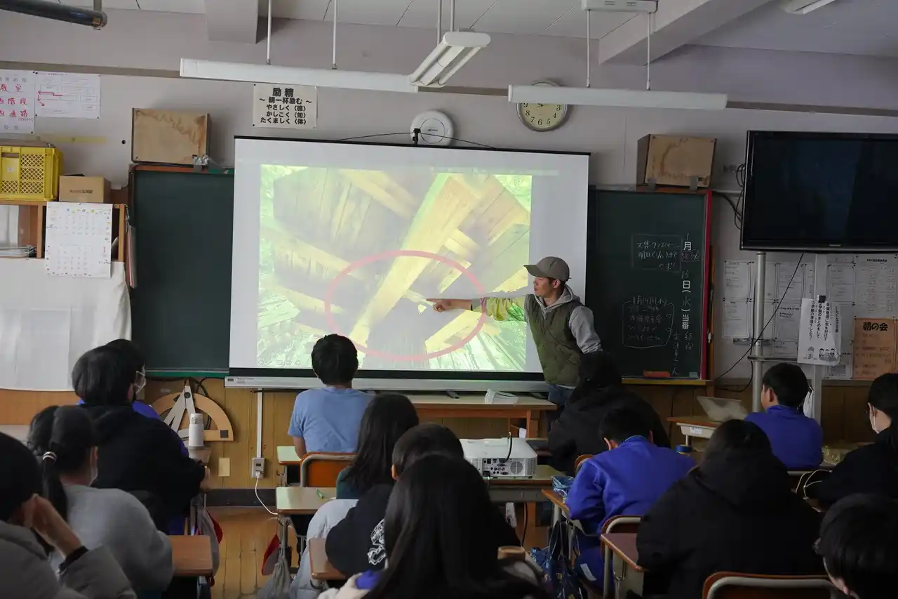 | フォレストアドベンチャー・長野のスタッフがクラスを訪問し、45分間の出張授業を行いました。日本の森の現状や課題、放置された森が抱えるリスクなど、クイズ形式を交えながら行いました。「森林活用サービス」や「フォレストアドベンチャーの取り組み」については児童たちもどのように森を活かしたらいいのか考え発言し、学びを深めました。授業終了後には「森っていろんな働きがあるんだと思いました。行ってみたいと思います。」と嬉しい感想もいただきました。 | ||||||||||||||