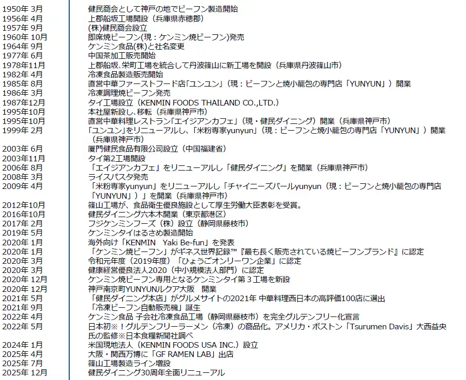 事業内容: ビーフン、フォー、ライスパスタ、ライスペーパー、ライスラーメン、はるさめ 、冷凍食品、烏龍茶などの製造・販売、外食店舗運営事業 |