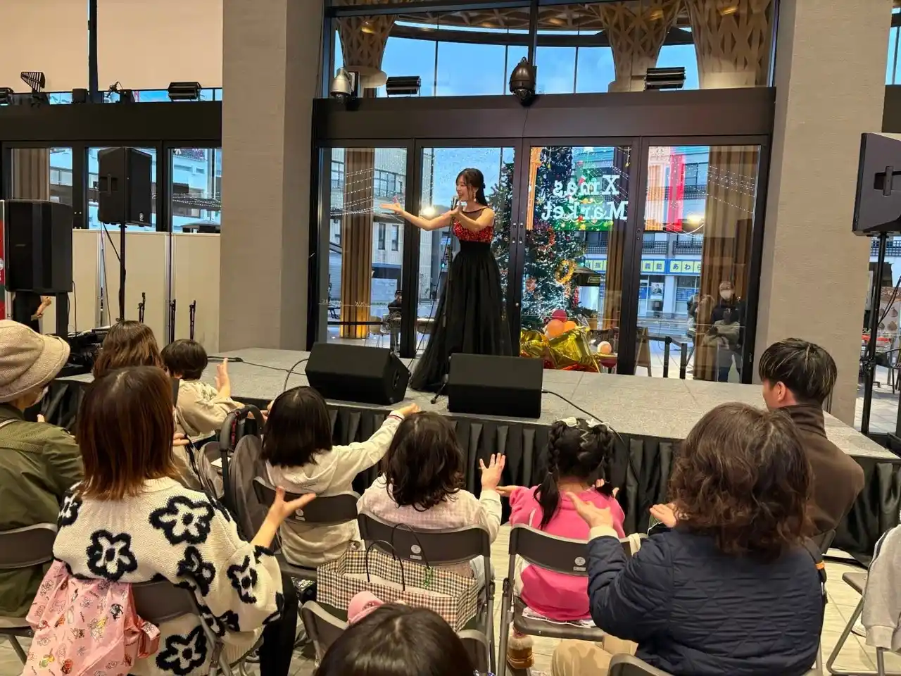 時間帯によってステージイベントも行われ、歌のパフォーマンスが会場を盛り上げていました。ツリーとイルミネーションを背景にしたステージは、まさにクリスマスならではです。立ち止まって聴き入る人や、子どもと一緒に楽しむ家族の姿も多く見られました。 |