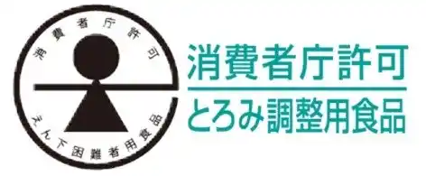 本商品は、2022年に特別用途食品「とろみ調整用食品」の許可を取得しました。水・お茶・濃厚流動食などを飲み込みやすくし、食事をまとまりやすくすることで、安全な食生活をサポートします。 |