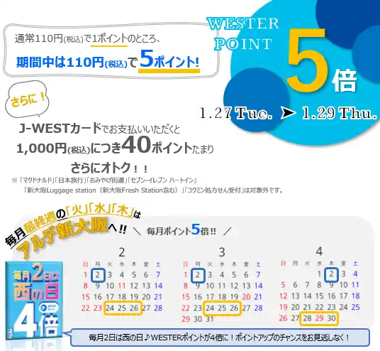 | 4.WESTERポイント5倍キャンペーン実施! | ||||||||||||||||