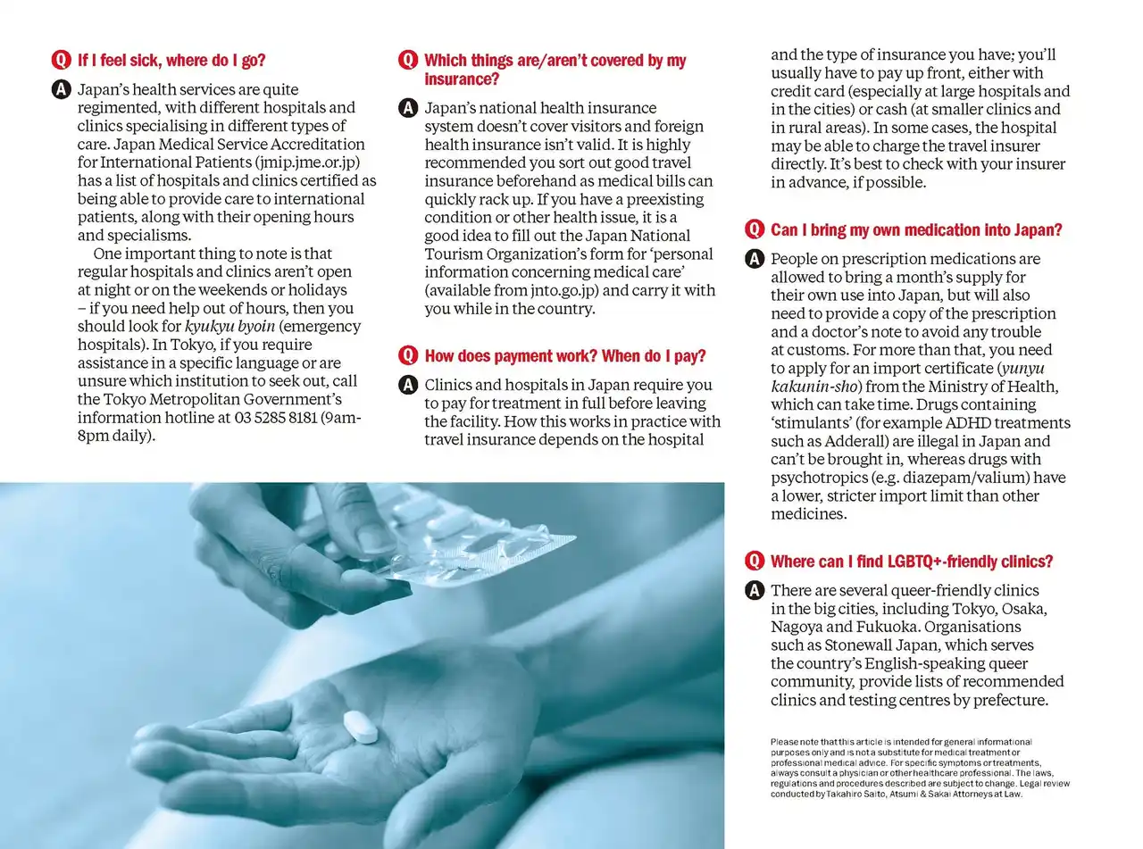 | こうした課題を背景に、当社は海外への高い情報発信力を持つ『Time Out Japan Magazine』を通じて、英語対応およびオンライン診療に対応した医療機関を中心に、訪日中でも安心して受診できる医療情報を提供します。 | |||
