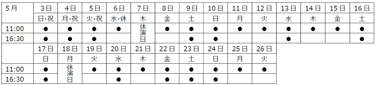 ※5月13日(水)11:00公演には学生団体様がいらっしゃいます。 |