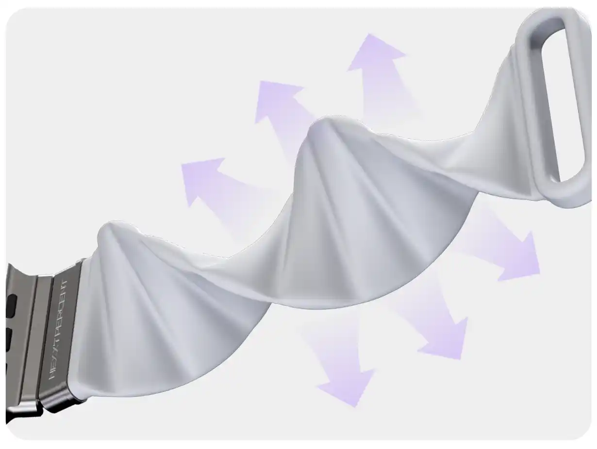 0.1mmの極薄FPC(フレキシブルプリント基板)を採用。ワイヤレス充電機能を備えながら、バンドのスリムさと軽量感を維持します。 |