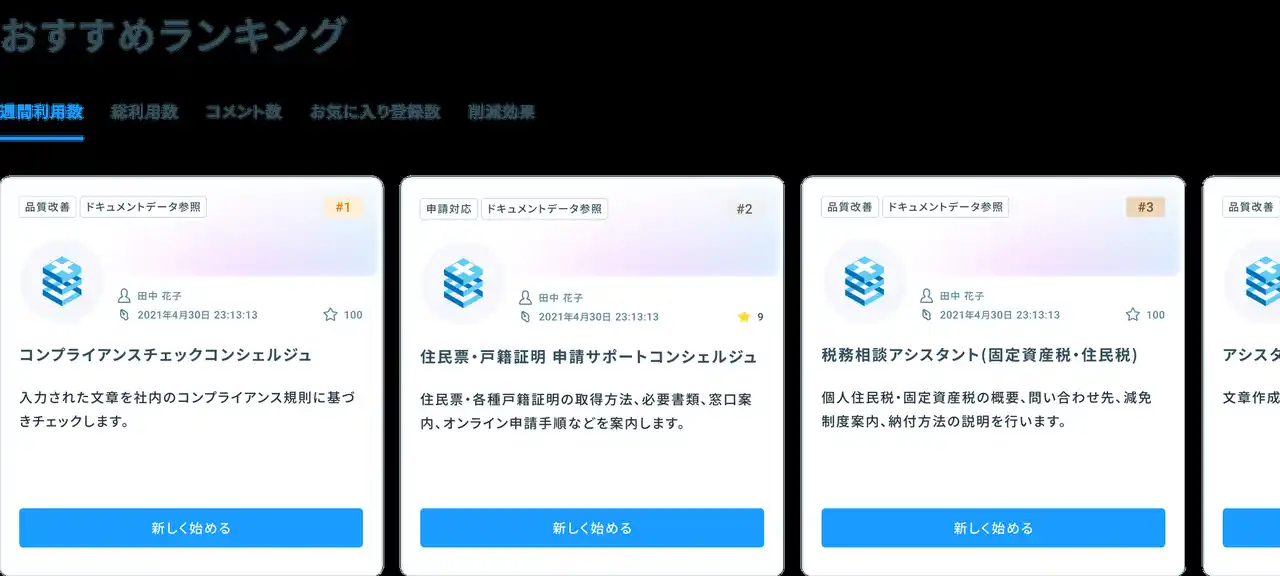業務別に最適化されたテンプレートコンシェルジュを提供します。公開中のテンプレートコンシェルジュ一覧から、業態に応じて選択し、有効化することで、導入後すぐに活用効果を実感していただけます。 |