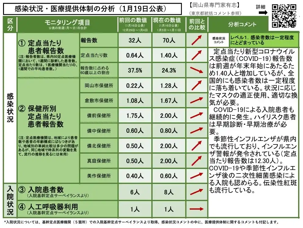 【岡山大学】岡山県内の感染状況・医療提供体制の分析について(2026年1月19日現在)