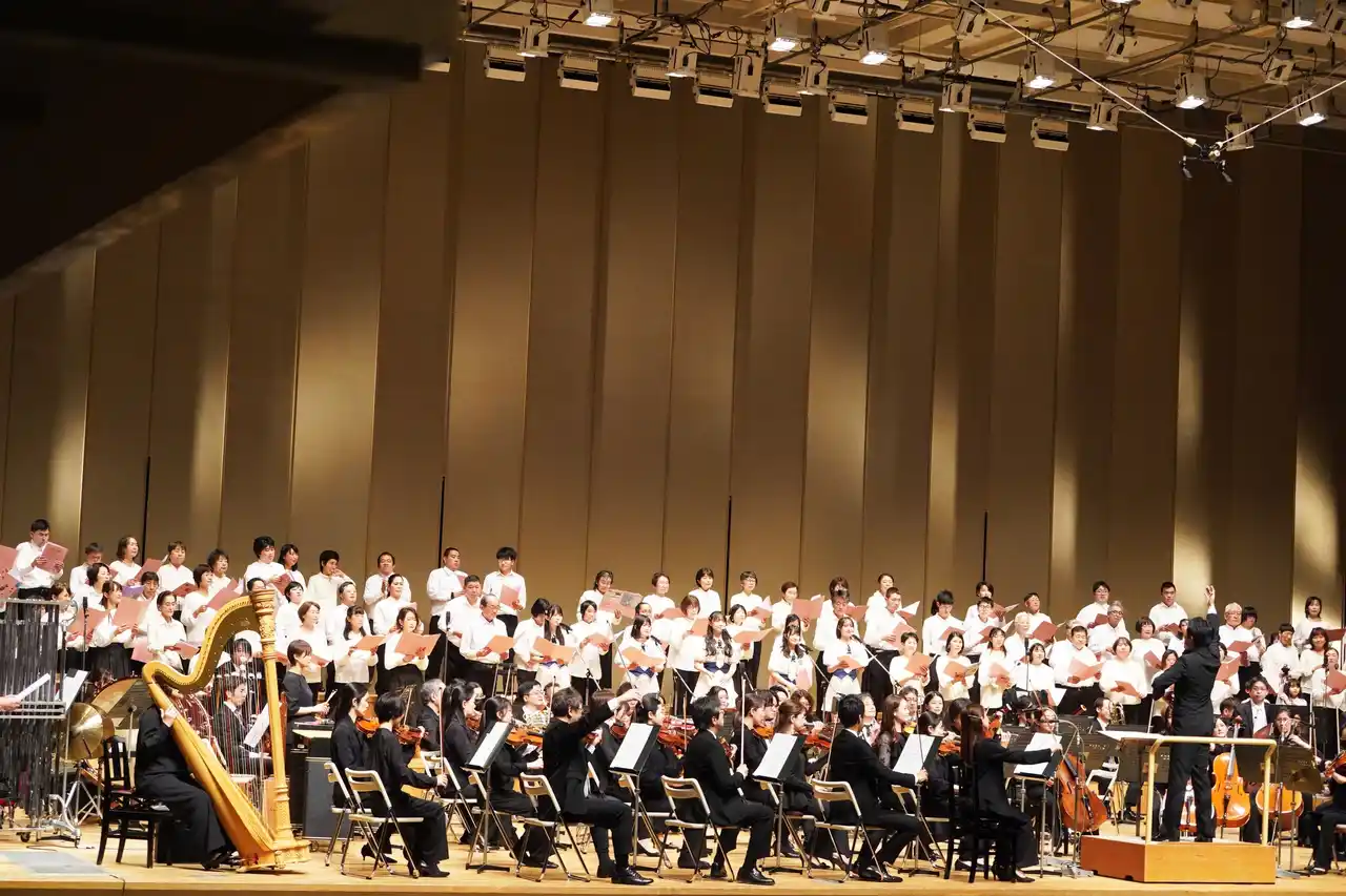 力強い和太鼓の演奏、心温まる合唱と手話による歌、そして広島交響楽団の迫力あるオーケストラ・サウンドが織りなす、感動的なジョイントコンサートとなった。 |