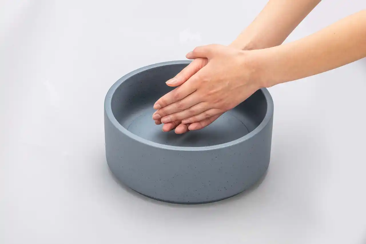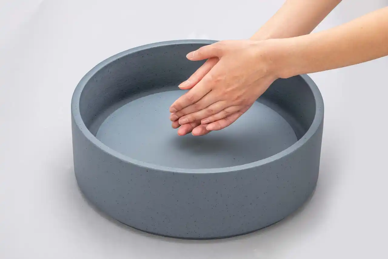 手洗い鉢としての機能性と美しさを両立するため、深さや厚みなど全体のバランスを丁寧に設計しました。エッジ部分には、手仕事ならではの繊細でシャープなラインを追求しています。 |
