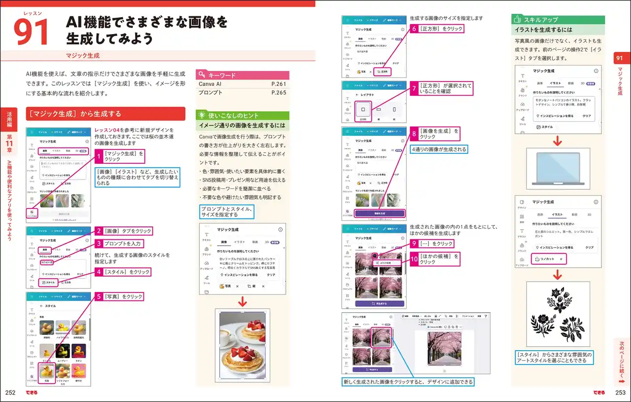 | ホーム画面の見方から、数あるテンプレートの中からの最適な選び方、文字や画像の編集、効率的なファイル整理まで、基本操作を丁寧に解説しています。 | |||||||||||||||||