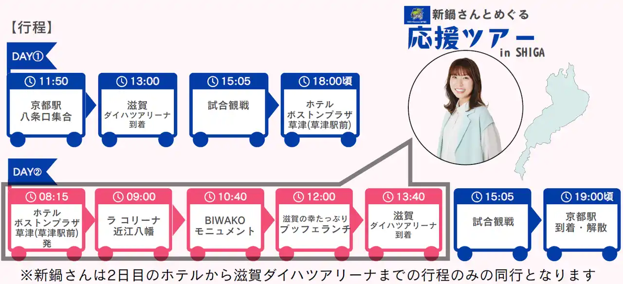 ・ツアー名 :滋賀県モニターツアー(東レアローズホームゲーム)新鍋さんとめぐる応援ツアーinSHIGA |