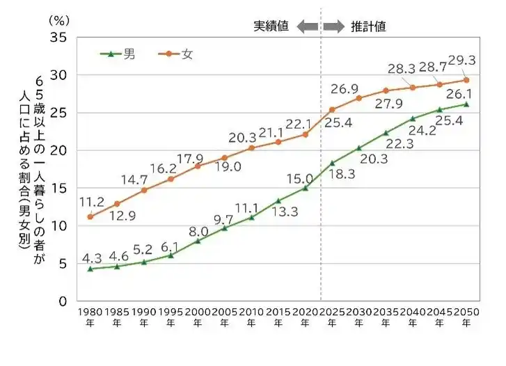 【参考】65歳以上の一人暮らしの者の動向(内閣府 令和7年版高齢社会白書データより作成) |