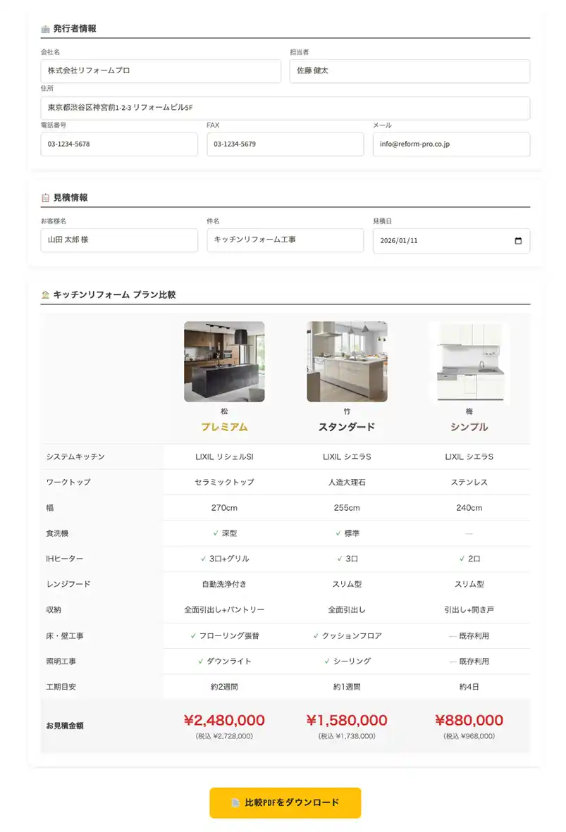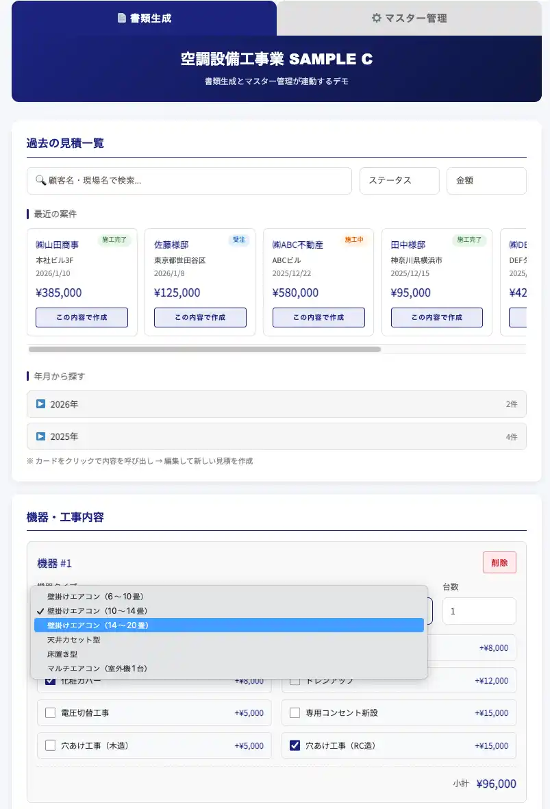 スタンダード見積: 秘伝の計算ロジックを搭載。誰でも即座に、正確に積算。 |
