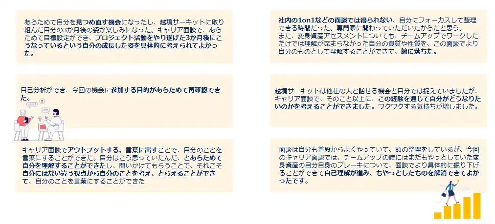 | <1on1参加者の声(例)> | |||