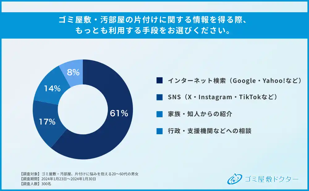 ゴミ屋敷・汚部屋の片付けに関する情報を得る際、もっとも利用する手段をお選びください。 |