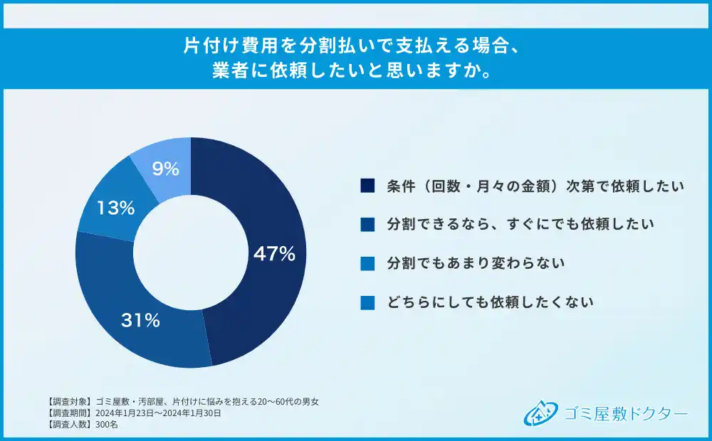 片付け費用を分割払いで支払える場合、業者に依頼したいと思いますか。 |