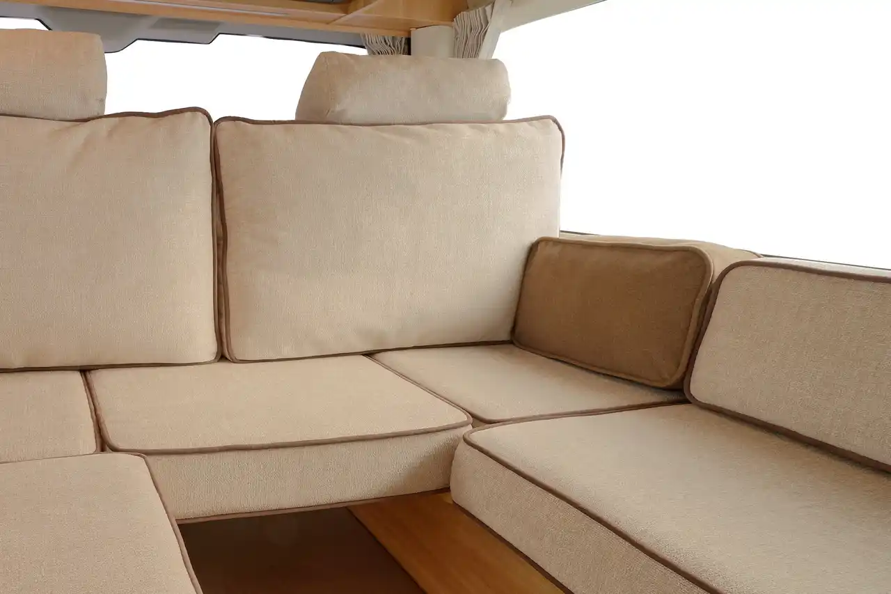 1. 車内とは思えない、極上の座り心地 bloccoならではの包み込むようなしなやかな座り心地を、キャンピングカーの室内にそのまま再現。家族でくつろぐ時間も、一人で読書やうたた寝を楽しむ時間も、ソファの存在を忘れるほどの快適さを実現しました。 |