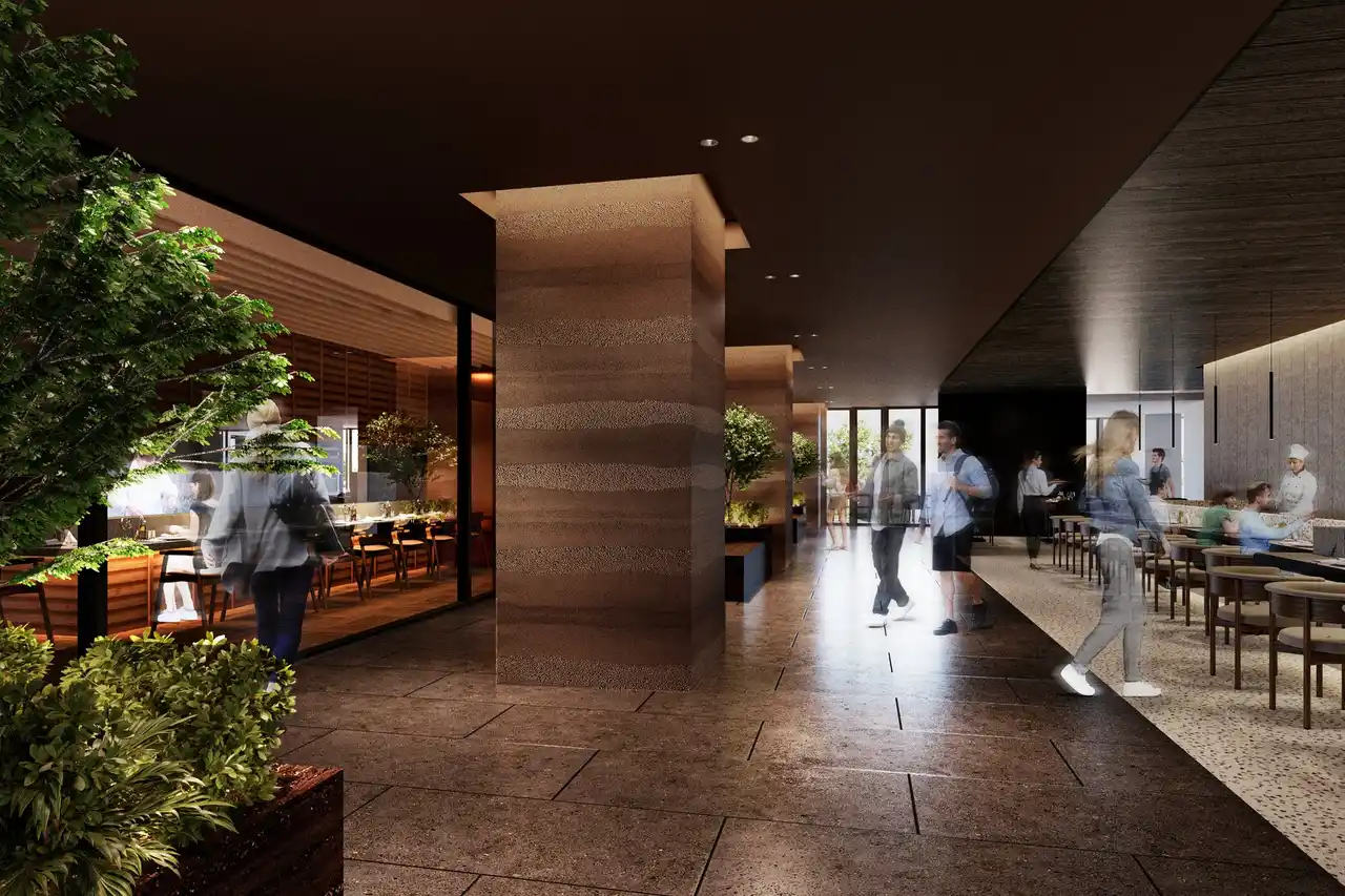 都市の中でひときわ存在感を放つ、洗練された空間創造を目指して設計されています。商環境のインテリアは、感性を刺激する洗練された空間に仕上げられています。建物全体は、都市の中でひときわ存在感を放つランドマークとして設計され、訪れる人々の記憶に残る佇まいを目指しました。エントランスや吹き抜け空間には独自のアートを取り入れ、日常の中でふと心が動くような体験を演出します。 |