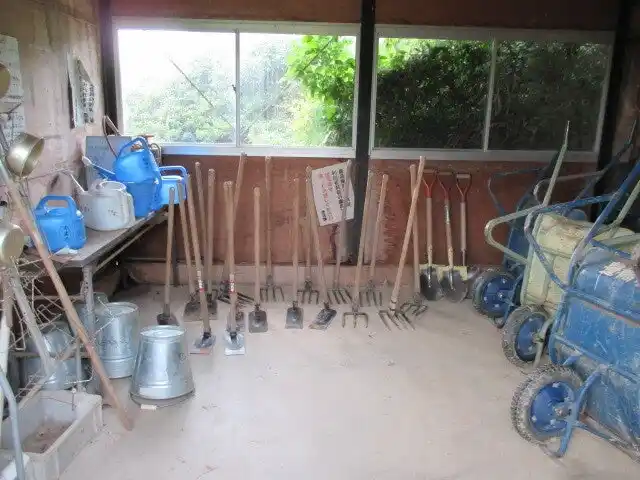 農園には利用者が共用で使える、鍬、備中、一輪車、ジョウロなど、栽培に必要な一般的な農具は常備しています。 |