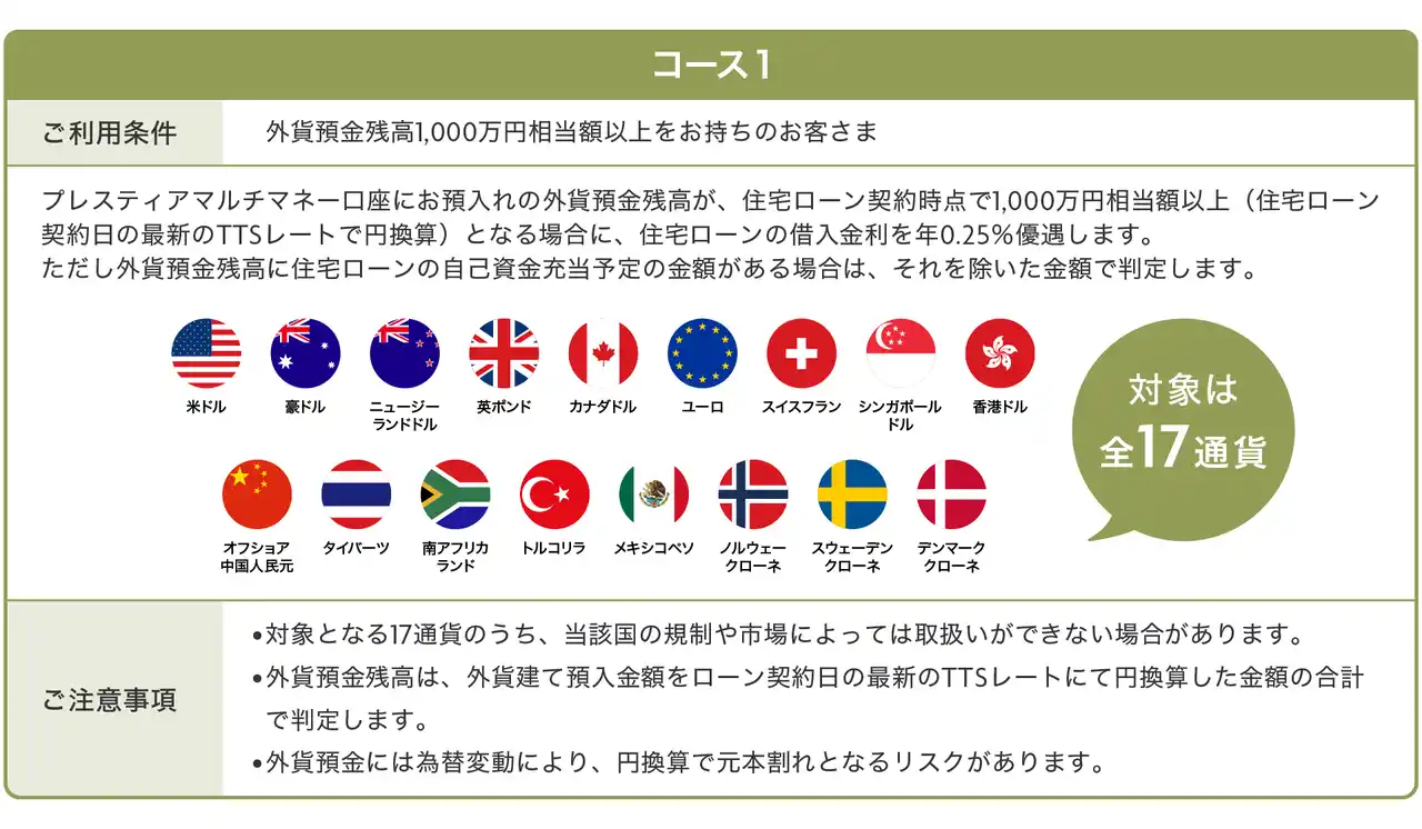 政策金利引き上げが続くなか固定金利型を志向する方や、国内最多クラスの取扱通貨数を取り揃えるプレスティアならではの外貨預金運用をされている方等、様々なお客さまのご意向・ご期待にお応えする金利優遇のご提供を実現します。 |