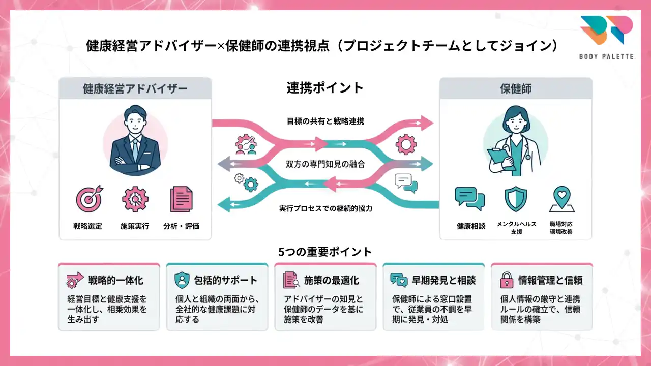| 健康経営アドバイザー×保健師の連携視点 | |||