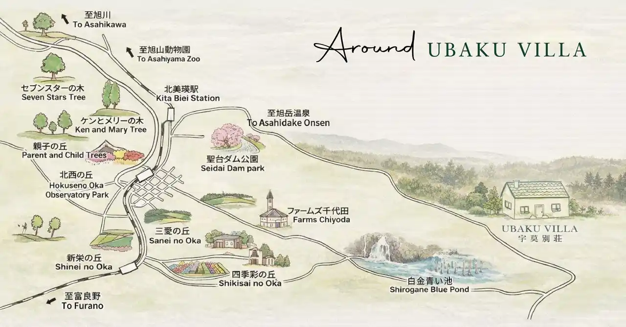 美瑛は旭川と富良野の中間地点に位置し、国内外から多くの観光客が訪れる一方で、日帰りにとどまっており、宿泊、特に中長期滞在はまだ伸びしろがあると感じています。Ubaku Villaでは「美瑛を観光する」だけでなく、中長期滞在を通じて、美瑛のライフスタイルや暮らし方の可能性を感じていただく入口になることを目指します。 |