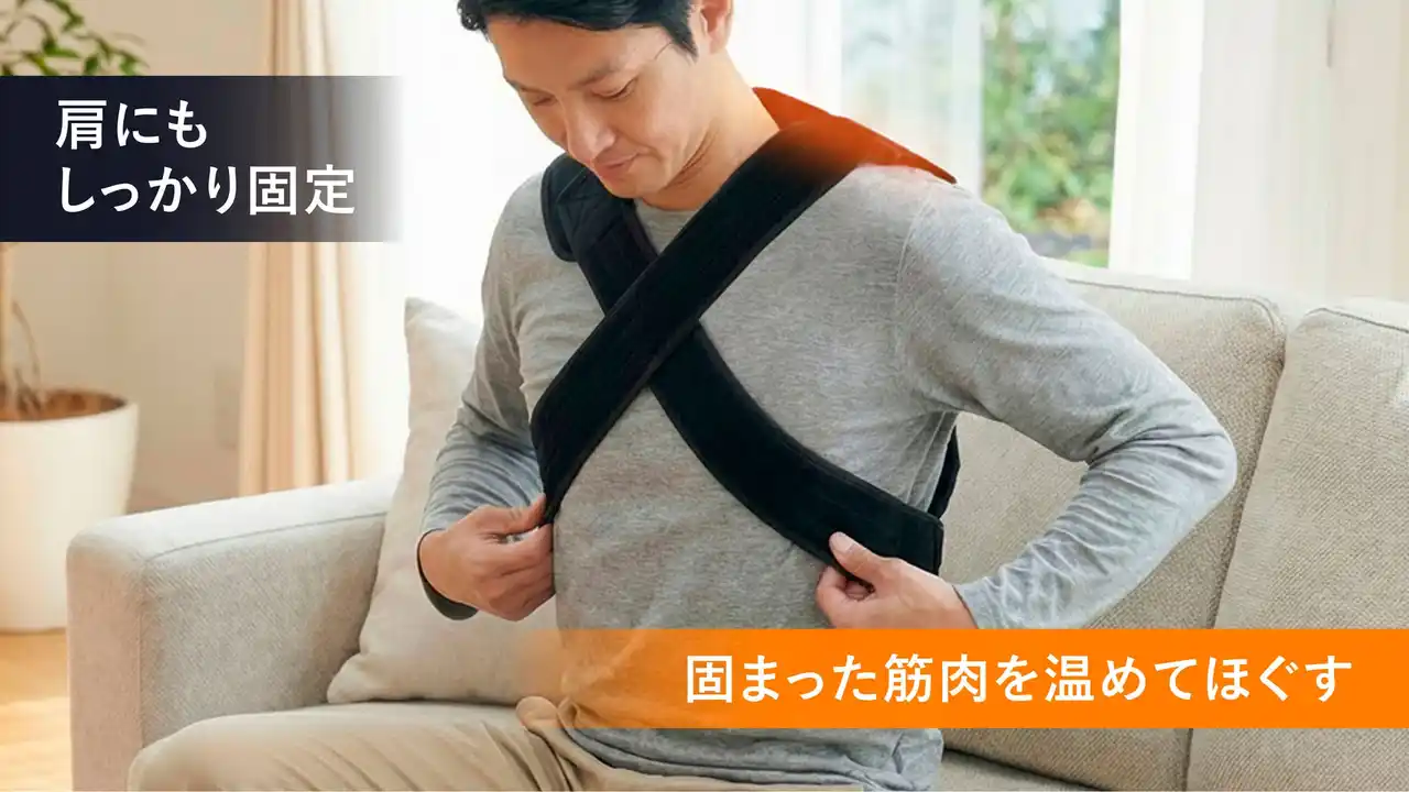 服の上から巻くだけなので、着替えは不要。デスクワーク中に、コリのケアが可能です。 |