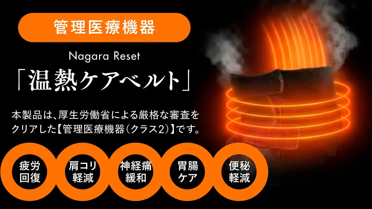 Future Memory合同会社(代表者:木内 美穂、本社:長野県塩尻市)は、服の上から巻くだけで温熱治療ができる管理医療機器「Nagara Reset(ナガラ・リセット)温熱ケアベルト」を、2026年1月24日(土)より、アタラシイものや体験の応援購入サービス「Makuake(マクアケ)」にて先行販売を開始いたしました。 |