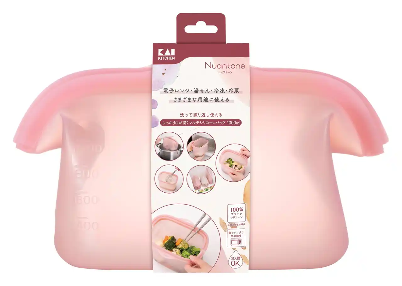 耐熱・耐冷・耐久性に優れた100%プラチナシリコーン製で、調理から保存まで幅広く使えます。くり返し使えるので環境にやさしいだけでなく、経済的な商品となっています。シリコーンバッグの中で調理から保存までこれ一つでできます。洗い物を減らしタイパも良い商品です。既存品よりもさらに底・口が広く、安定感のある使い心地です。 |