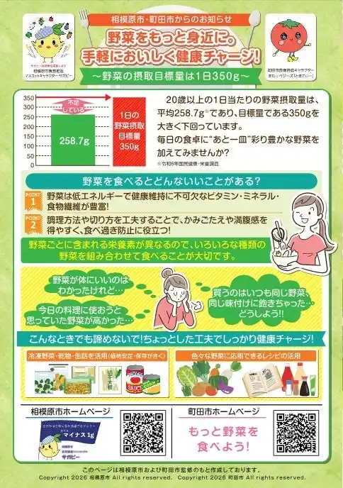 | 町田市と味の素株式会社は、「まちだ健康づくり推進プラン24-31」で掲げる『食で健康を支えるまち』を実現するために、1月26日に連携協定を締結します。 | |||||||||||||||||