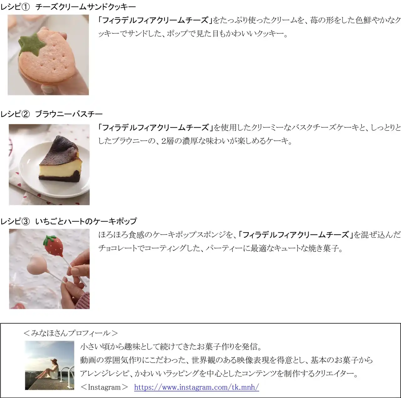 ■みなほさん考案「フィラデルフィアクリームチーズ」を使用したスイーツレシピ |